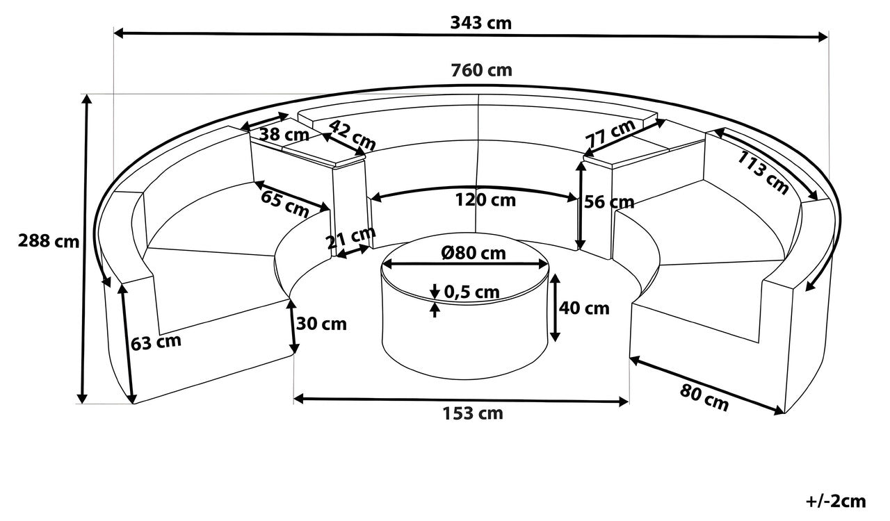 Half-Round Lounge Set for up to 9 people. This exclusive lounge set is made of high-quality poly rattan and stands out with its durability, load-bearing capacity, extreme weather resistance, and long lifespan. The removable white covers made of high-quality polyester are particularly easy to care for, thanks to their dirt- and moisture-repellent coating. The practical storage boxes are versatile and can be used as dividers between seating elements, as a convenient surface for your magazines, and also provide plenty of storage space for cushions or other items. The round lounge table also offers space for your summer cocktails.